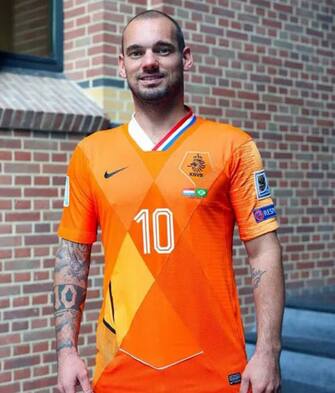 Prima di lui, era stato omaggiato con una maglia simile Wesley Sneijder: nel suo caso, 15 anni di divise oranje dell'Olanda tutti cuciti insieme, in occasione del suo addio alla nazionale (credit: Marques Malacia)