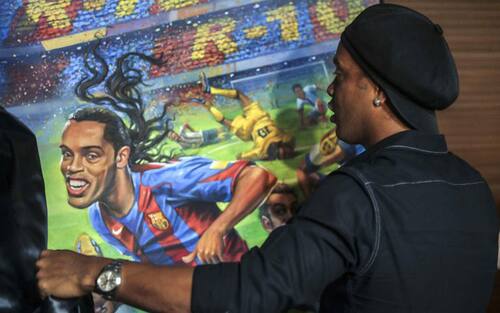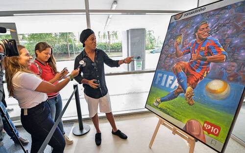 Ronaldo de Assis Moreira, per tutti Ronaldinho, ha inaugurato una mostra dell'artista brasiliano Camaleao. Si tratta di quadri che ripercorrono la carriera di uno dei campioni più amati e iconici degli ultimi 20 anni