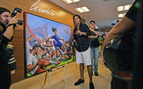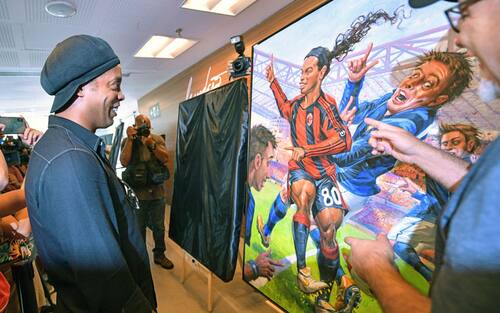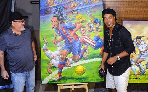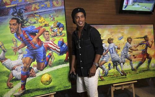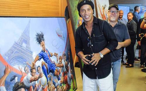 L'artista brasiliano Camaleao ha dipinto dei quadri che rappresentano la vita calcistica di Ronaldinho, il quale ha inaugurato la mostra pubblicando alcune foto su Instagram, con sentiti ringraziamenti