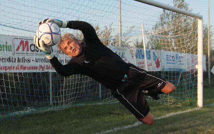 Lamberto Boranga, nel 2011 al tempo 69enne, in allenamento col Papiano, club della seconda categoria umbra (foto Ansa)