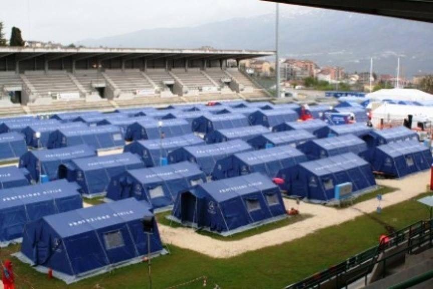 Lo stadio Gran Sasso di L'Aquila nel 2009 dopo il sisma
