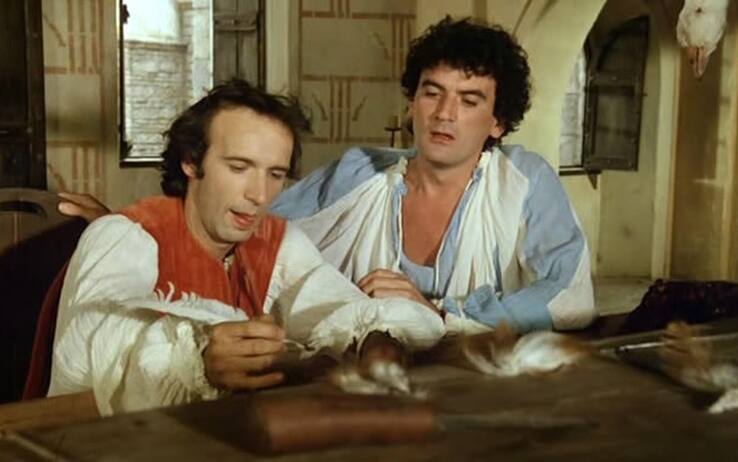 Roberto Benigni e Massimo nella mitica scena della lettera in "Non ci resta che piangere"