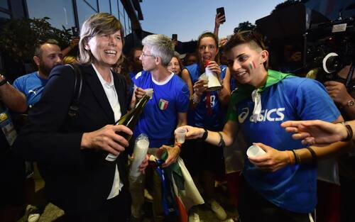 Grandi complimenti anche per la Ct, Bertolini, fermatasi a brindare insieme ai fan azzurri, in delirio dopo il trionfo ai danni della Cina