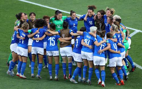 ... il ko si è rivelato inutile ai fini della classifica. L'Italia, infatti, ha vinto il suo girone ed è partita la festa in campo, con il capitano Sara Gama portata in trionfo dalle compagne
