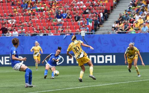 Nonostante il tifo incessante, il Mondiale azzurro è partito male: l'Australia è passata in vantaggio con il gol della Kerr, lesta a ribattere in rete il rigore respinto dalla Giuliani