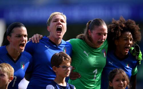 Ma le Azzurre non hanno avuto paura e già prima del fischio d'inizio hanno mostrato la loro carica emotiva. Un inno cantato a squarciagola per farsi coraggio e incutere timore nelle avversarie