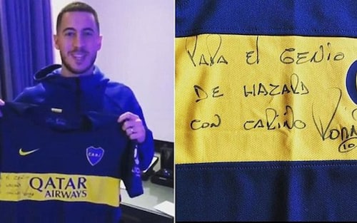 EDEN HAZARD: nessuna dichiarazione esplicita per il belga, ma per lui parlano le numerose foto e maglie a testimonianza della sua passione: in particolare per Riquelme, con cui ha avuto l'onore di scambiarsi la maglia e riceverne una degli Xeneizes autografata