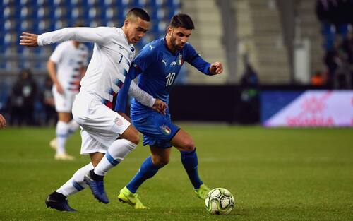 STEFANO SENSI. Convocato per la prima volta in Nazionale nel novembre 2018, fa il suo esordio a 23 anni, da titolare, nell’amichevole contro gli Stati Uniti. Il 26 marzo 2019 trova anche il suo primo gol in azzurro, contro il Liechtenstein