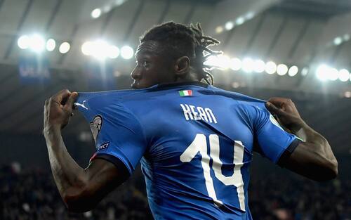 MOISE KEAN. Debutto a 18 anni e 9 mesi, nell'amichevole contro gli Stati Uniti, diventando il primo nato negli anni 2000 a vestire la maglia azzurra. Il 23 marzo 2019, contro la Finlandia, gioca titolare e trova anche il primo gol, a 19 anni e 23 giorni, secondo più giovane marcatore nella storia della Nazionale dopo Bruno Nicolè