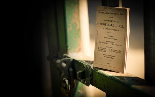 A partire dalla fondazione del club nel 1857, il suo comitato studiò le varie regole e i codici di "Mob Football" che venivano spesso applicati a questo gioco nelle università. Dopo due anni di esperimenti e dibattiti, stabilirono il loro insieme di leggi standardizzate che diventarono le fondamenta del gioco moderno di oggi. Scritto da Nathaniel Creswick (a sinistra) e William Prest (a destra- vedi foto) il Rulebook del 1859 è il primo set ufficiale di regole e leggi per il gioco del calcio e definisce le invenzioni di regole valide ancora oggi come il calcio d'angolo, la rimessa, la punizione, il cross, le barriere e i vari falli.