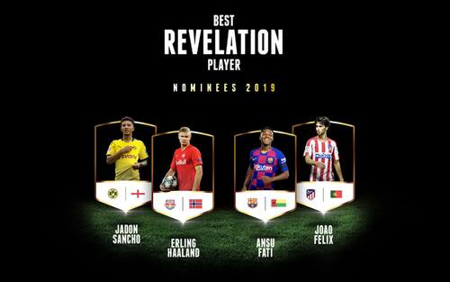 BEST REVELATION PLAYER. Si premiano i campioni e pure i giovani talenti del calcio internazionale: in finale gli enfant prodige Joao Felix (pagato 126 milioni di euro in estate dall’Atletico Madrid), Jadon Sancho, classe 2000 e superstar del Borussia Dortmund, Erling Haaland, 19enne dai gol a raffica in questa stagione e il predestinato Ansu Fati, 17 anni e ultima stellina lanciata dal Barcellona attraverso la Masia. Sfumate, invece, le possibilità di essere premiato per Kai Havertz.
