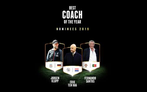 BEST COACH OF THE YEAR. I finalisti candidati al titolo di miglior allenatore sono Erik Ten Hag (Ajax), Fernando Santos (Portogallo) e Jurgen Klopp (Liverpool). Nella prima selezione di finalisti figuravano anche Massimiliano Allegri reduce dai trionfi con la Juventus e il Ct dell'Algeria Djamel Belmadi che ha sollevato la Coppa d’Africa.