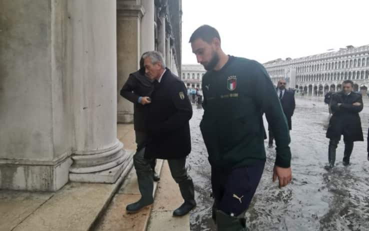 "Abbiamo trovato una città ferita, che sta vivendo un momento difficile. Abbiamo incontrato i commercianti e abbiamo cercato di portare un momento di serenità, affetto, vicinanza e solidarietà dal mondo del calcio. Vogliamo realizzare un progetto concreto da regalare alla città". Parola del presidente della Figc Gabriele Gravina, in visita a Venezia con Gianluca Vialli, capodelegazione della Nazionale, e il portiere Gianluigi Donnarumma. La Nazionale ha fatto sentire così la sua vicinanza alla città colpita dall'alta marea eccezionale delle scorse ore, arrivando in mattinata in Laguna dopo la vittoria di venerdì sera sul campo della Bosnia e aprendo le porte dell'allenamento dei campi del Taliercio ai tifosi: "Un segnale di speranza? Di certo è un'Italia che ha ritrovato il senso dell'entusiasmo, dell'orgoglio, dell'appartenenza – le parole di Gravina a Sky Sport - quello che Roberto Mancini sta realizzando con la Figc è un percorso eccezionale per tutti gli italiani. Al netto delle difficoltà logistiche che abbiamo avuto per i trasferimenti, i ragazzi hanno immediatamente raccolto con enorme entusiasmo questo tipo di iniziativa. Domani mattina poi ci sposteremo a Palermo per giocare lunedì sera l'ultima partita del percorso di qualificazioni”.