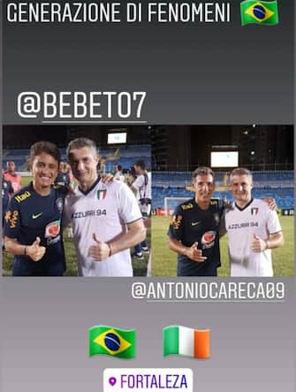 Il match-winner dell'incontro, Massaro, si è poi immortalato con alcuni giocatori brasiliani, tra cui Bebeto e Careca (foto Instagram @danielemassaro_real)