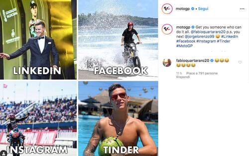 Anche Fabio Quartararo sembra aver apprezzato il collage dedicatogli dal profilo ufficiale della MotoGp