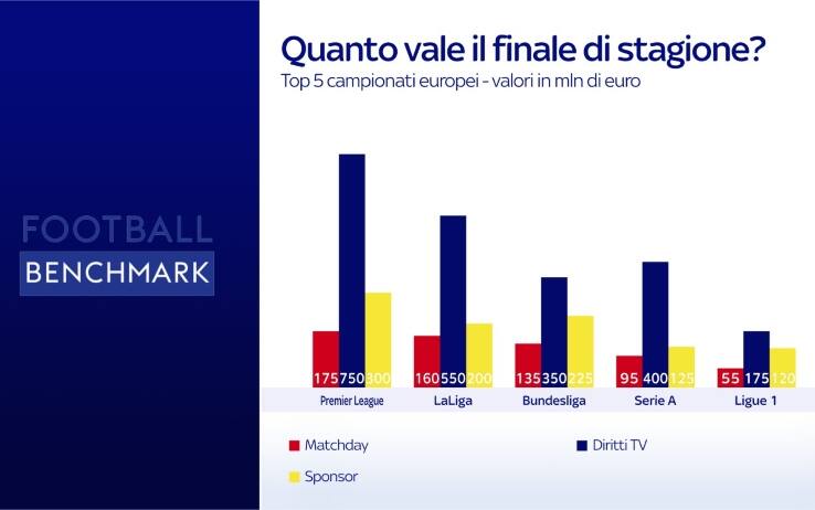 Il dato aggregato dei 5 principali campionati europei è stimato al massimo in 4 miliardi di euro. Premier chiaramente in testa, ma il valore è alto per tutti.