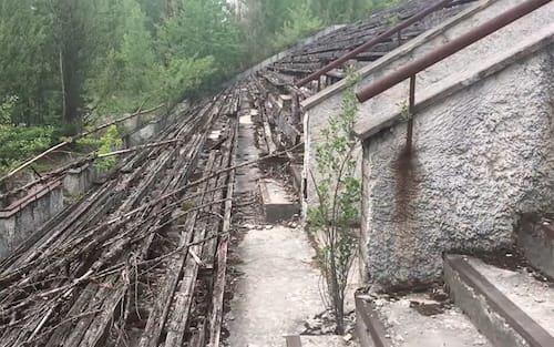 STADION AVANHARD DI PRIPYAT, UCRAINA. "In questo scatto c’è lo stadio di oggi, solo un po’ mimetizzato. Trovato? Sì, è quello in alto al centro: si vede la tribuna e si intuiscono le curve della pista di atletica. Il campo no, adesso è un boschetto. Pripyat, Ucraina: a tre km da Chernobyl. Ci vado nel marzo 2011 assieme a un gran fotografo, Alberto Giuliani. Il pretesto sono i 25 anni dell’incidente nucleare più grave della storia, la realtà è che quel luogo, la ghost town evacuata (tardi) dopo la fusione del reattore, esercita su di me una potente suggestione. Il biglietto per la zona di esclusione costa 500 dollari e prevede una guida militare dotata di contatore geiger. Lo raggiungiamo alla guarnigione che delimita l’accesso alla zona proibita. Breve memorandum sulle cose da non fare - allontanarsi da lui, in sostanza - e si va. Il primo stop è a Chernobyl. I famosi fumaioli emergono dal sarcofago di cemento nel quale è stato sepolto il reattore; cinque anni dopo, nel 2016, l’hanno rifatto. Da lì, tremila metri di strada dritta e sconnessa - Lenin Avenue sulla cartina - e arrivi nel centro di Pripyat. Ci sono posti dove puoi andare: lo stadio, la piscina, la scuola, il supermercato. Ci sono posti dove non puoi: l’ospedale, il cimitero (hanno sepolto scorie radioattive). Lo stadio Avanhard è un boschetto ordinato, delimitato dal cemento della pista. Ci giocava lo Stroitel. L’albergo? 'A vostro rischio'. Non di radiazioni, ma di crolli. Siamo in pieno disgelo, dai tetti scendono incessanti rivoli d’acqua che scavano nelle strutture finché un giorno, primavera dopo primavera, ne hanno ragione. Saliamo i sei piani con grande circospezione. Beh, il panorama valeva il rischio. Dal tetto dell’edificio si vede il sarcofago lontano, la ruota del luna park, la natura rigogliosa che sta vincendo la battaglia sul cemento e presto ricoprirà l’intera città morta. Resto mezz’ora lassù, inebetito dal fascino dell’assurdo. Fuori in due ore, era l’accordo. Rispettato, e speriamo bene. 'Tranquilli, ci sono vecchi che ci vivono'. Parecchi anziani sono tornati, tollerati in barba ai divieti: i militari li riforniscono, una volta al mese un medico li visita. Fantasmi. Anche se radioattiva, è casa loro"