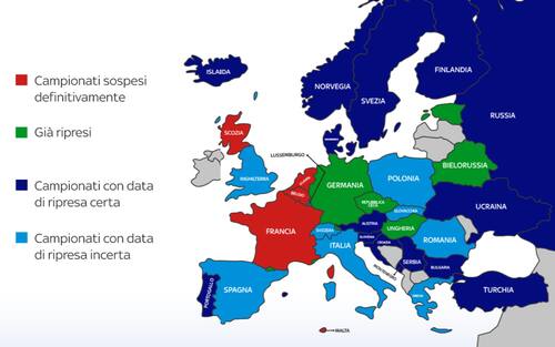 In Germania le squadre sono già tornate in campo, altri stanno ancora decidendo. Nel resto d'Europa ci sono dieci campionati pronti a ripartire. Ma vediamo la situazione aggiornata Paese per Paese.