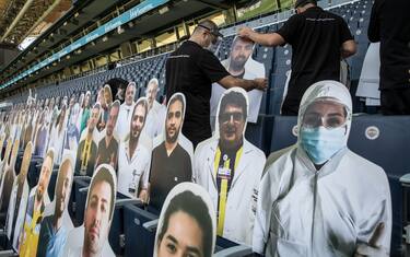 Riparte il campionato in Turchia dopo tre mesi di stop a causa del Covid-19. Sugli spalti del Sukru Saracoglu di Istanbul - lo stadio del Fenerbahce - omaggio ai medici in lotta contro la pandemia, rappresentati dai cartonati del personale sanitario posizionati insieme a quelli dei tifosi.