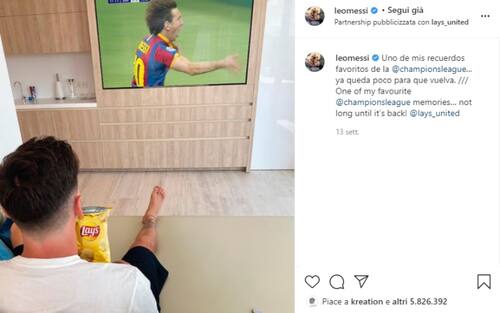 3) LIONEL MESSI (Barcellona): 168 milioni di seguaci sui social