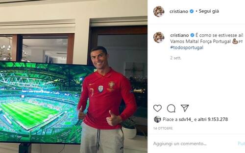 1) CRISTIANO RONALDO (Juventus): 329.4 milioni di seguaci sui social
