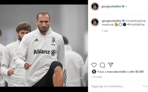 - 14) GIORGIO CHIELLINI (Juventus): 6.3 milioni di seguaci
