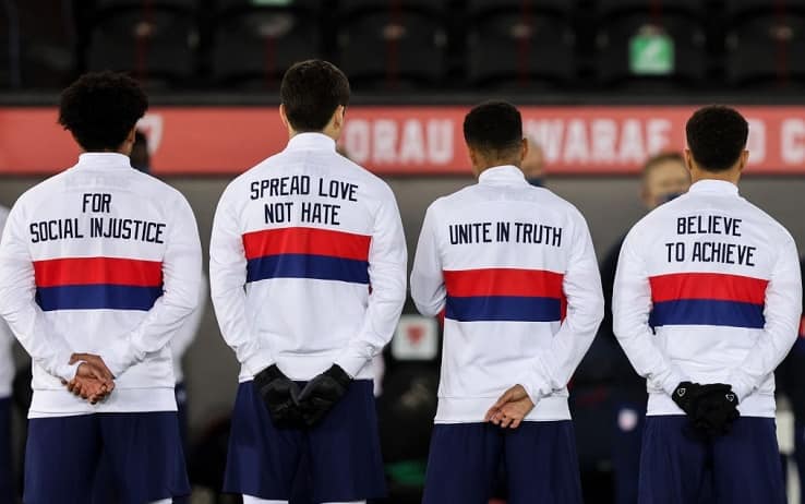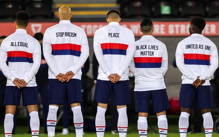 Una giornata storica per la Nazionale degli Stati Uniti, tornata in campo al Liberty Stadium di Swansea per sfidare in amichevole il Galles a nove mesi dall'ultimo impegno ufficiale (1-0 contro Costa Rica l'1 febbraio 2020). I calciatori allenati da Gregg Berhalter hanno lanciato durante l'ingresso in campo e l'esecuzione dell'inno nazionale dei messaggi sociali forti, legati agli eventi avvenuti negli Usa negli scorsi mesi. Tutti mostravano lo slogan "Be the Change" ("Sii il cambiamento") sul petto. "Ogni persona ha la capacità, l'opportunità e la responsabilità di fare la differenza a modo nostro" come spiega una nota della federcalcio statunitense. Sul retro della giacca, ogni giocatore ha avuto l'opportunità di includere un messaggio personalizzato che rappresentava qualcosa di significativo: tra i temi più battuti la giustizia sociale, la ricerca della verità e la lotta al razzismo. 0-0 il finale dell'amichevole, in una gara affrontata dagli States con un undici titolare dall'età media di 22 anni e un attacco formato da soli Under 20, con il 2001 Konrad de la Fuente, supportato dai 2002 Reyna e Musah.