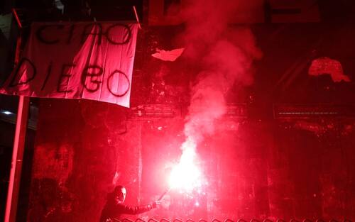 NAPOLI, L'OMAGGIO DEI TIFOSI SOTTO IL MURALES DI DIEGO: VIDEO