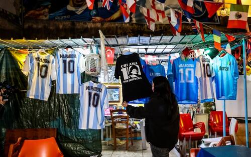 Molti tifosi si sono radunati anche a San Giovanni a Teduccio, dove c'è un altro murales dedicato al Pibe de Oro