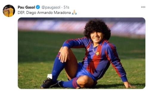 "La Federcalcio argentina, attraverso il suo presidente Claudio Tapia, esprime il suo più profondo dolore per la morte del nostro mito, Diego Armando Maradona. Sarai sempre nei nostri cuori".