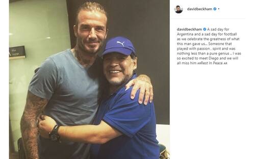 David Beckham: "Una giornata triste per l'Argentina e per il calcio, mentre celebriamo la grandezza di ciò che quest'uomo ci ha dato... Giocando con passione, spirito, un puro genio. Ero felicissimo di incontrare Diego e mancherà a tutti".