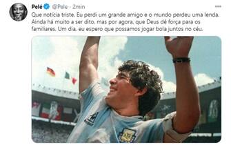 Pelè: "Che triste notizia. Ho perso un grande amico e il mondo ha perso una leggenda. Un giorno, spero che potremo giocare a palla insieme nel cielo".