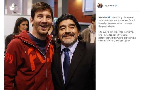 Leo Messi, "erede" di Diego: "Una giornata molto triste per tutti gli argentini e per il calcio. Ci lascia ma non se ne va, perché Diego è eterno. Conservo tutti i bei momenti vissuti con te e ho voluto cogliere l'occasione per inviare le mie condoglianze a tutta la sua famiglia e ai suoi amici".