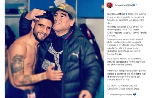Lorenzo Insigne, capitano del Napoli: "Dal primo giorno in cui sei arrivato nella nostra amata Napoli, sei diventato un Napoletano doc. Hai dato tutto per la tua gente, hai difeso questa terra, l'hai amata. Ci hai regalato la gioia, i sorrisi, i trofei, l’amore. Sono cresciuto sentendo i racconti della mia famiglia sulle tue gesta. Sei stato il più grande giocatore della storia, sei stato il Nostro Diego. Ho avuto la fortuna di incontrarti, parlarti, conoscerti. Da tifoso, da Napoletano, da Calciatore: Grazie di tutto D10S. Ti ameremo per sempre".