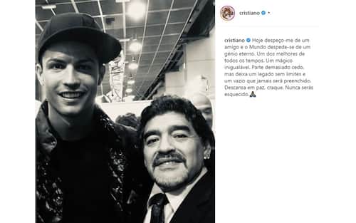 Cristiano Ronaldo: "Oggi dico addio a un amico e il mondo saluta un eterno genio. Uno dei migliori di sempre. Un mago senza pari. Se ne va troppo presto, ma lascia un'eredità senza limiti e un vuoto che non verrà mai colmato. Riposa in pace, asso. Non sarai mai dimenticato".