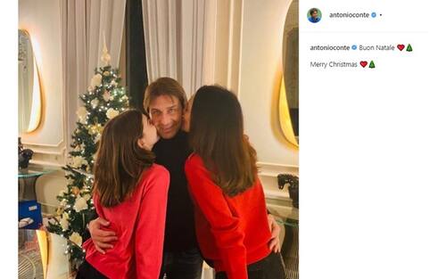 Antonio Conte circondato dalle sue donne: la figlia Vittoria e la moglie Elisabetta.
