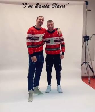 Zlatan Ibrahimovic posa in uno shooting fotografico con Rebic: "I'm Santa Claus"