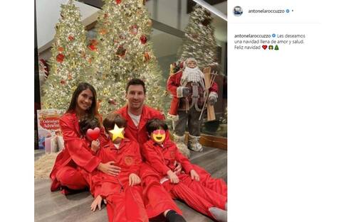 Leo Messi con Antonela e i loro tre figli.