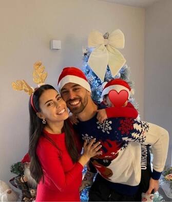 L'esterno della Roma Leonardo Spinazzola con la moglie Miriam Sette e il loro piccolo