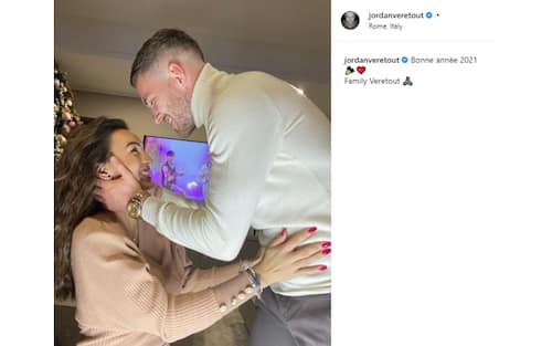 Romanticissimo il centrocampista francese della Roma Jordan Veretout con la moglie Sabrina.