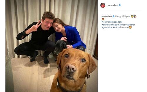 Il "jolly" del Bayern Thomas Müller con la moglie Lisa e un amico speciale!