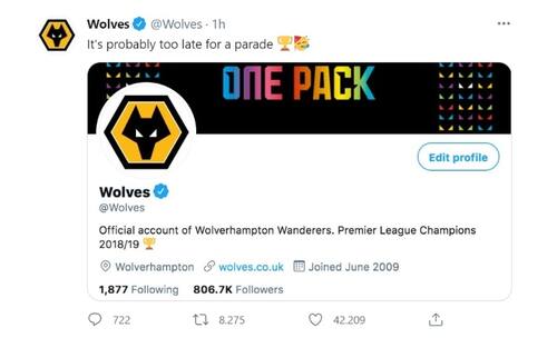 Il Wolverhampton ironizza sulla Superlega, auto-proclamandosi campione della Premier League 2018/2019. In quella stagione, infatti, il Wolverhampton chiue al 7° posto in Premier, alle spalle delle sei squadre che hanno scelto di aderire alla Superlega. Secondo alcune ipotesi, le squadre che prenderanno parte alla Superlega potrebbero essere escluse dai rispettivi campionati: in questo senso il Wolverhampton scherza sulla possibilità di essere eletto vincitore della Premier 2018/2019. "Probabilmente è troppo tardi per una parata", scrive il Wolverhampton su Twitter
