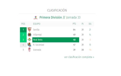 Molto più pratico il Betis che, paventata l'ipotesi dell'esclusione dalla Liga dei club aderenti alla SuperLega, propone la classifica aggiornata del campionato spagnolo