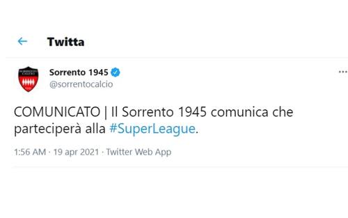 Attualmente il Sorrento milita nel girone H della Serie D italiana e attraverso il profilo ufficiale del club annuncia che parteciperà alla prossima SuperLega