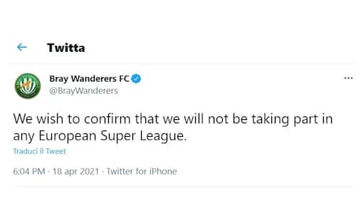 Anche i club più piccoli ironizzano sulla SuperLega. E' il caso del Bray Wanderers che milita nella serie B irlandese: "Vogliamo confermarvi che non prenderemo parte alla SuperLega"