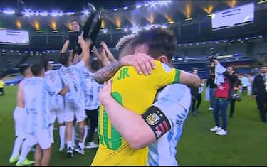 COPA AMERICAAl termine della premiazione, la commozione della Pulce che in mezzo al campo videochiama moglie e figli per mostrare loro la medaglia tanto inseguita con la maglia dell'Argentina. "Sapevo che sarebbe successo, grato a Dio per avermi dato questo momento in Brasile e contro il Brasile"