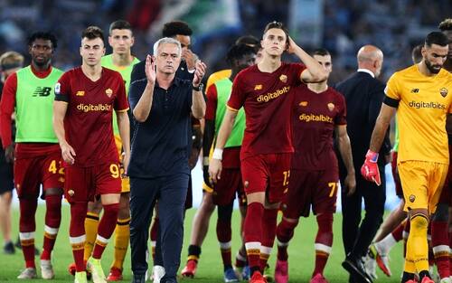 Lazio-Roma: Sarri con l'aquila Olimpia, Mou sotto la curva. Le foto più belle del derby