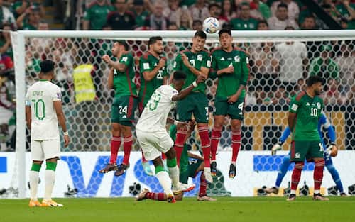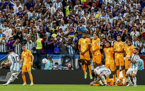 Punizione dal limite di Messi. Come è normale che sia, in questi casi le squadre avversarie si attrezzano in ogni modo, e il "coccodrillo" è ormai un'arma di difesa a cui nessuno rinuncia. Se ne sono visti tanti, al Mondiale: protagonisti, spesso, campioni che si sdraiano volentieri per il bene comune