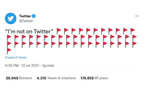 Twitter twitta: "Non sono su Twitter". Seguito da una serie di bandierine rosse. Ed ecco che la moda è lanciata, il tormentone social parte e inizia il "gioco". Le bandierine rosse in breve tempo accompagnano tweet provocatori o divertenti, e in pratica stanno a significare "è l'esatto contrario di ciò che ho scritto". La moda si è presto allargata al mondo del calcio, con il social media manager del Manchester United che per primo ha accettato la "sfida", seguito anche da alcuni club italiani. Ognuno con la propria "bugia" seguita dalle bandierine rosse