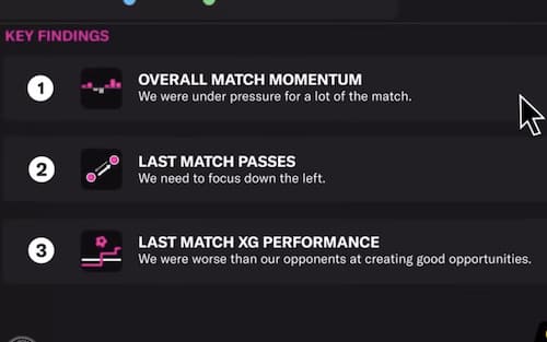 MATCH MOMENTUM - I momenti chiave del match: "Questo nuovo grafico fornisce una chiara percezione dell'andamento della partita per capire come gli equilibri siano cambiati nei 90 minuti". Ovviamente tutto a favore della propria tattica, per capire quali siano i momenti di particolare dominio o sofferenza durante la partita.